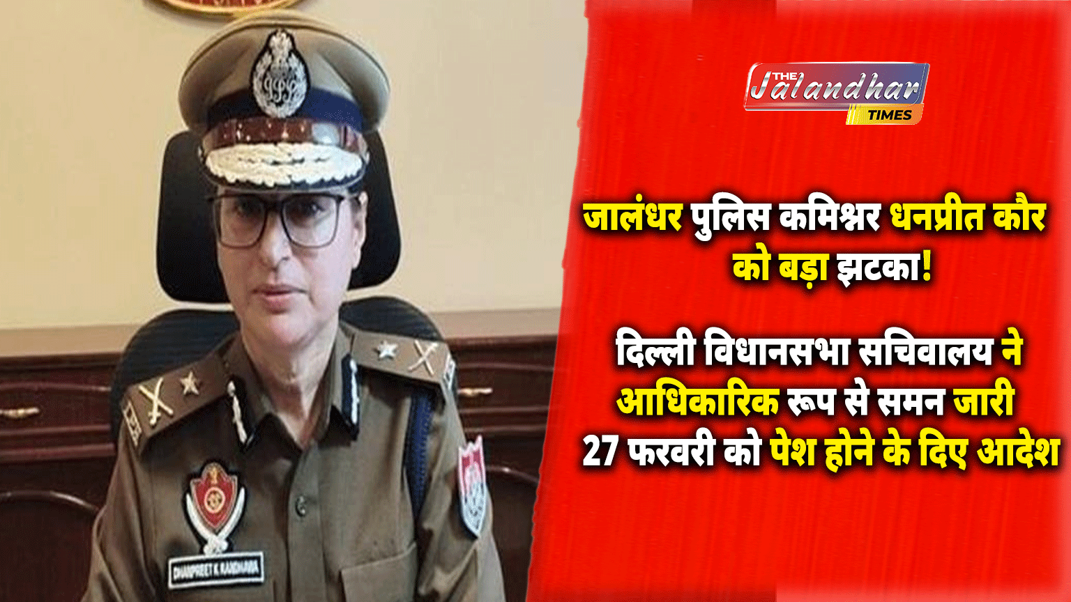 рджрд┐рд▓реНрд▓реА рдХреА рдкреВрд░реНрд╡ рдореБрдЦреНрдпрдордВрддреНрд░реА рдЖрддрд┐рд╢реА (Atishi Video Case) рд╕реЗ рдЬреБрдбрд╝реЗ рдХрдерд┐рдд рд╡реАрдбрд┐рдпреЛ рд╡рд┐рд╡рд╛рдж рдореЗрдВ рдЬрд╛рд▓рдВрдзрд░ рдкреБрд▓рд┐рд╕ рдХрдорд┐рд╢реНрдирд░ рдзрдирдкреНрд░реАрдд рдХреМрд░ (Dhanpreet Kaur, Police Commissioner Jalandhar) рдХреЛ рдмрдбрд╝рд╛ рдЭрдЯрдХрд╛ рд▓рдЧрд╛ рд╣реИред рджрд┐рд▓реНрд▓реА рд╡рд┐рдзрд╛рдирд╕рднрд╛ рд╕рдЪрд┐рд╡рд╛рд▓рдп (Delhi Assembly Secretariat) рдиреЗ рдЙрдиреНрд╣реЗрдВ рдЖрдзрд┐рдХрд╛рд░рд┐рдХ рд░реВрдк рд╕реЗ рд╕рдорди рдЬрд╛рд░реА рдХрд░ 27 рдлрд░рд╡рд░реА рдХреЛ рджреЛрдкрд╣рд░ 3 рдмрдЬреЗ рдкреЗрд╢ рд╣реЛрдиреЗ рдХреЗ рдЖрджреЗрд╢ рджрд┐рдП рд╣реИрдВред